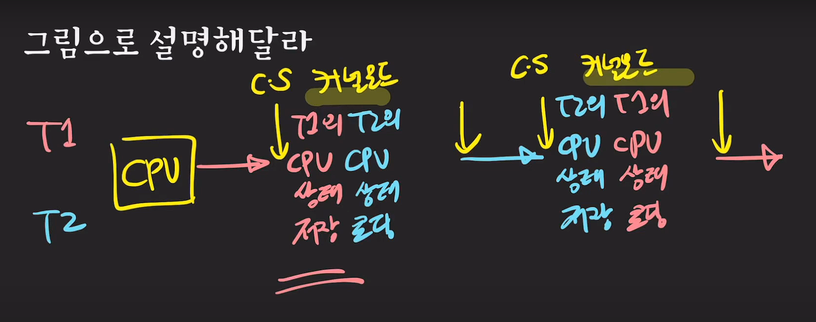- T1에 있던 상태 정보를 CPU의 레지스터에 저장