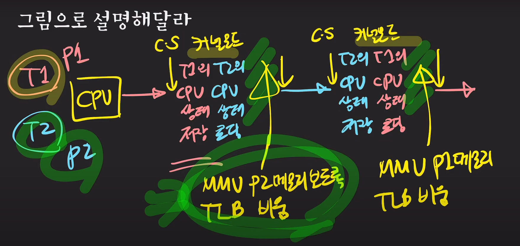 CPU가 프로세스를 전환하는 동안 애플리케이션은 그 전환 작업 자체에 대한 이득이 없고, 그저 CPU가 준비되는 시간을 기다리는것 뿐