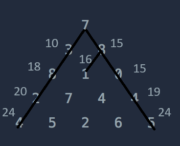 | [[7], [3, 8], [8, 1, 0], [2, 7, 4, 4], [4, 5, 2, 6, 5]] | 30 |