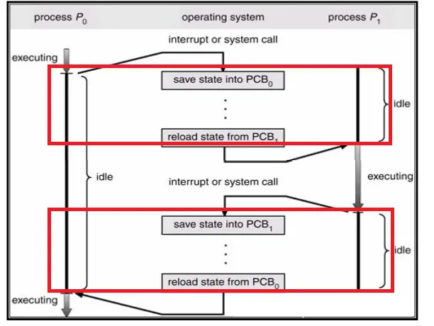 프로세스들이 교체되어 수행되고 나면 원래 수행하던 프로세스의 정보를 저장하고