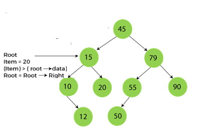 - 일치하지 않으면 항목이 루트 요소보다 작은지 확인하고 루트 요소보다 작으면 왼쪽 하위 트리로 이동