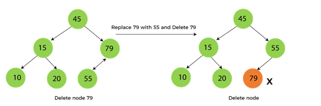 - 자식 노드와 삭제할 노드의 위치를 변경