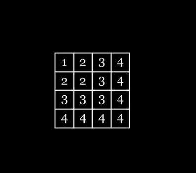 i행i열까지의 영역 내의 모든 빈 칸을 숫자i로 채웁니다.